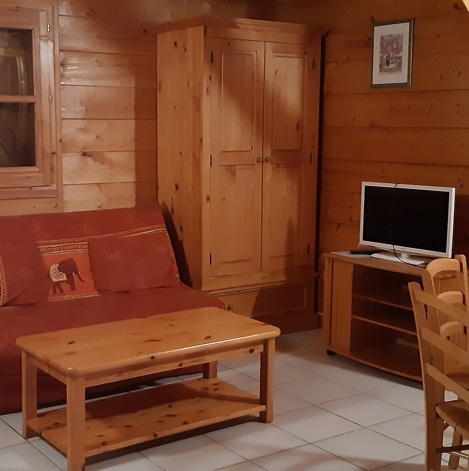 Appartement cosy à l’esprit chalet, avec terrasse bois et mezzanine. Son atmosphère intime et son agencement en font un hébergement idéal pour un séjour nature et reposant.